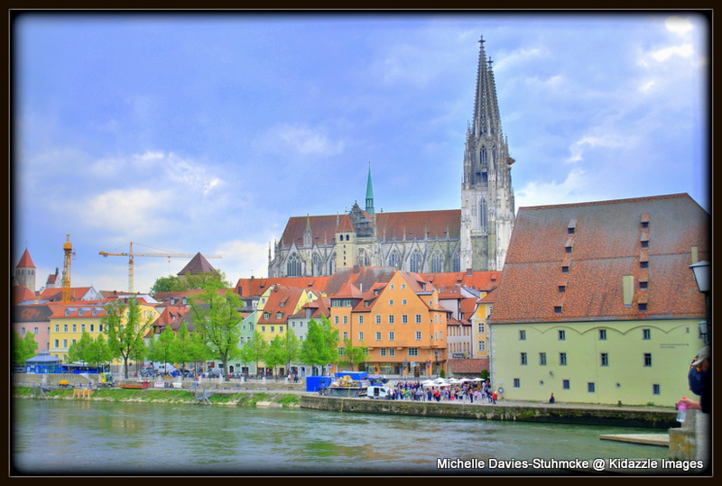As we wandered along the banks of the Danube, we came to Regensburg’s old, arching stone bridge. It was evidently the very first stone Bridge to cross the banks of the Danube in Germany…..so old indeed, that it has seen the knights of the 2nd and 3rd Crusades trotting across its structure on their trusty steeds way back in about the 12th Century A.D.
